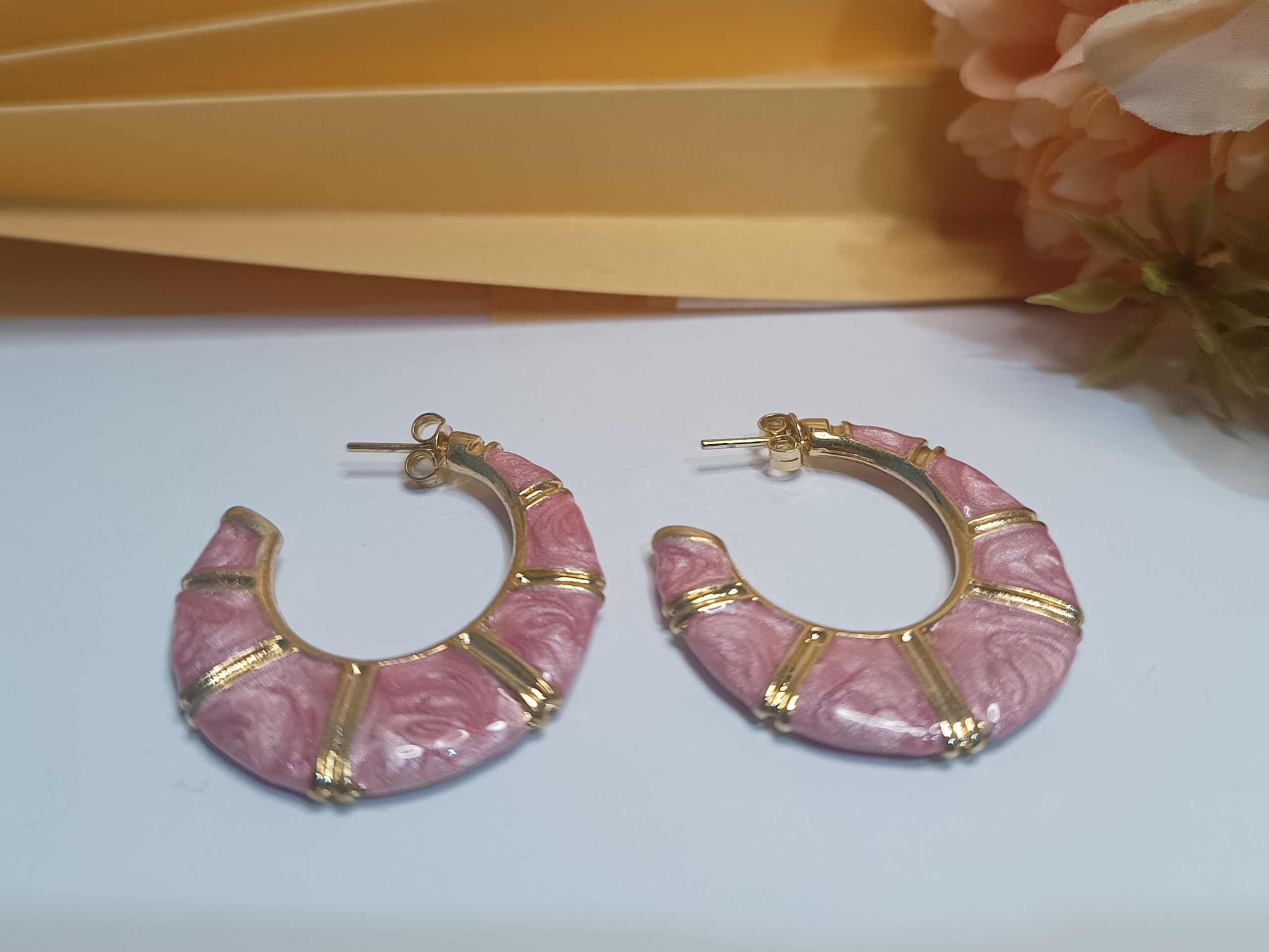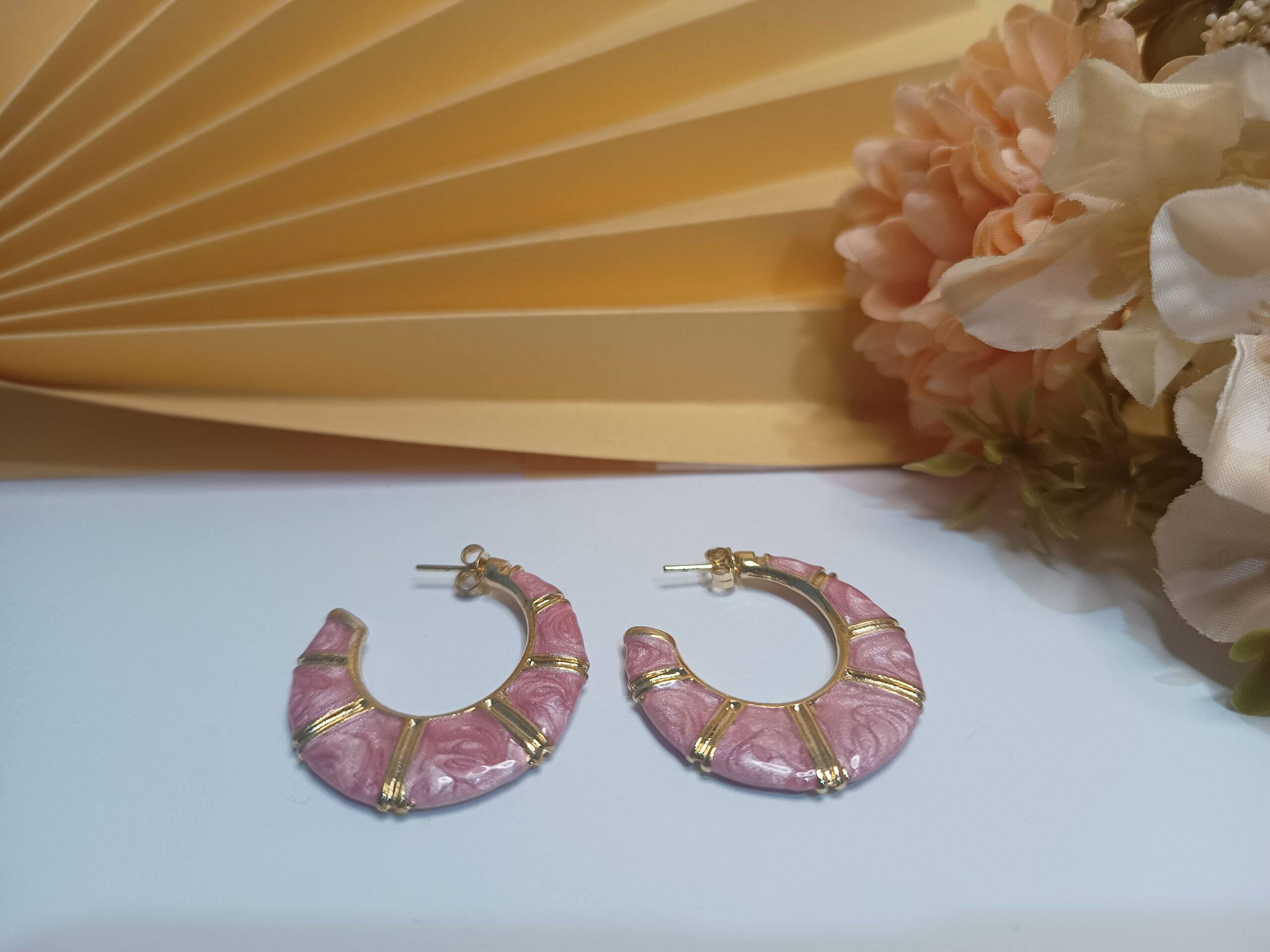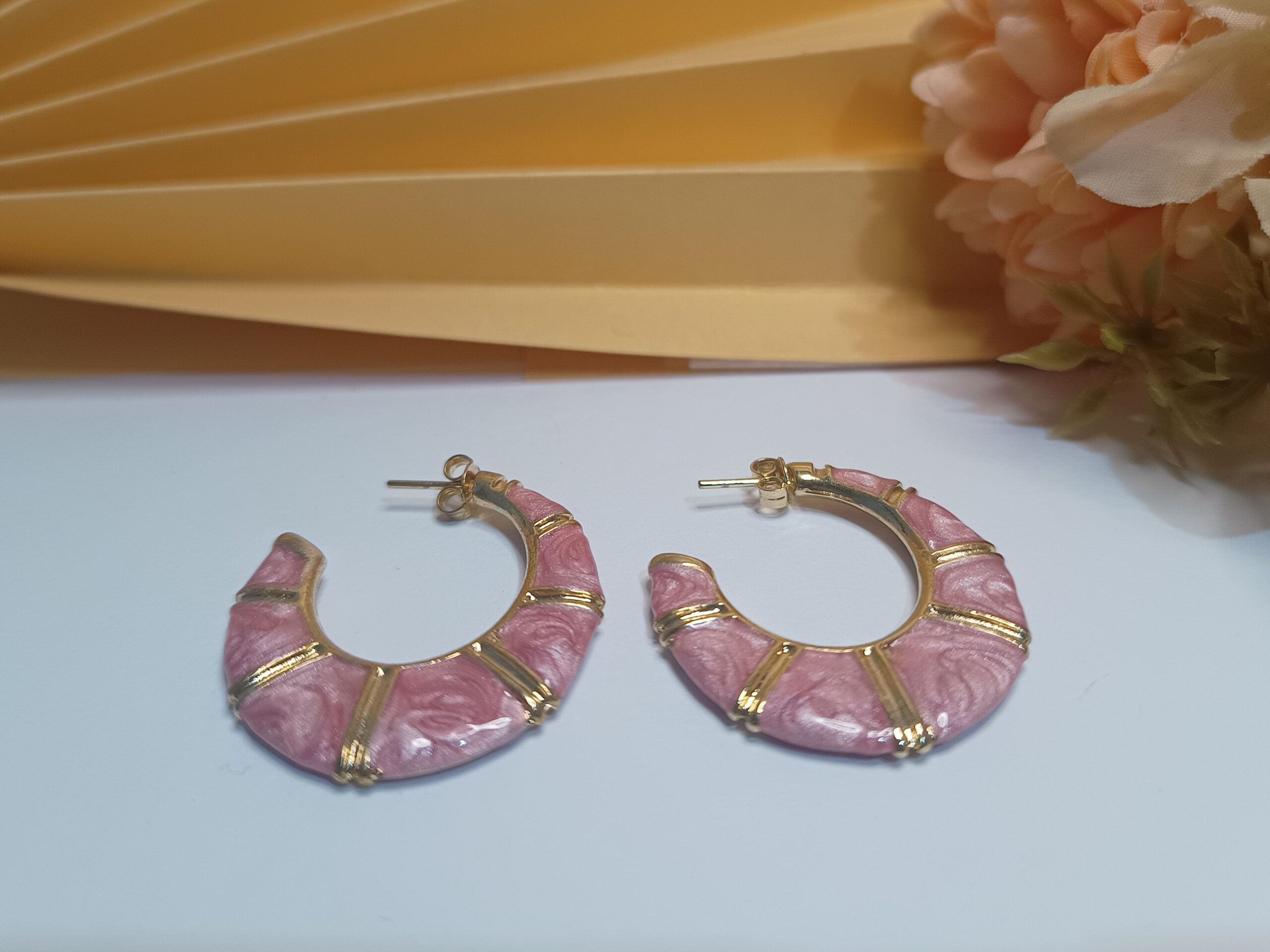 Brincos esmaltados folheados a ouro 18k na forma de argola no formato de camarão tipo madrepérola