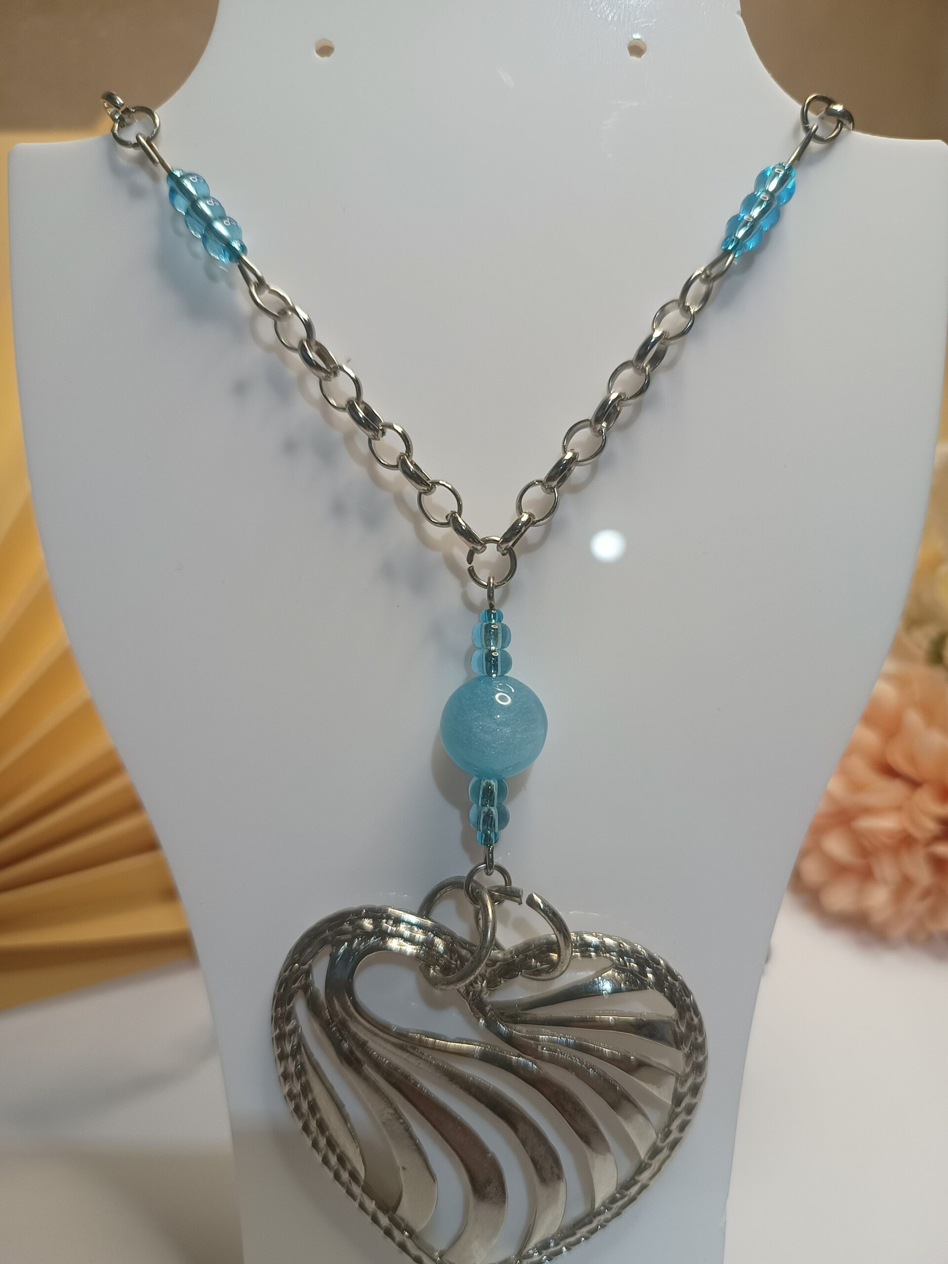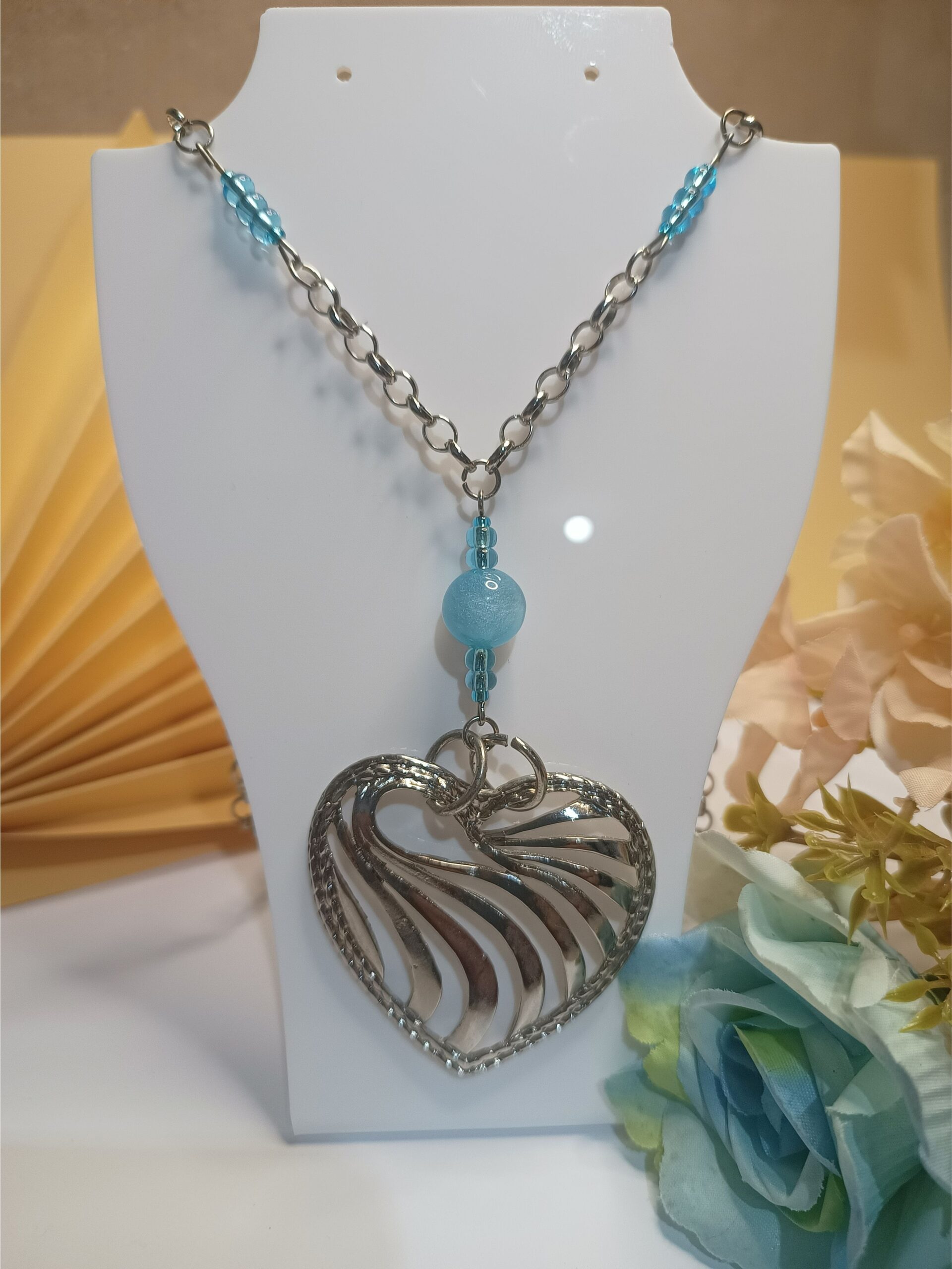 Seja o primeiro a avaliar “Colar com contas em azul com brilho cintilante, miçangas azuis, correntes prateadas premium e pingente de coração”