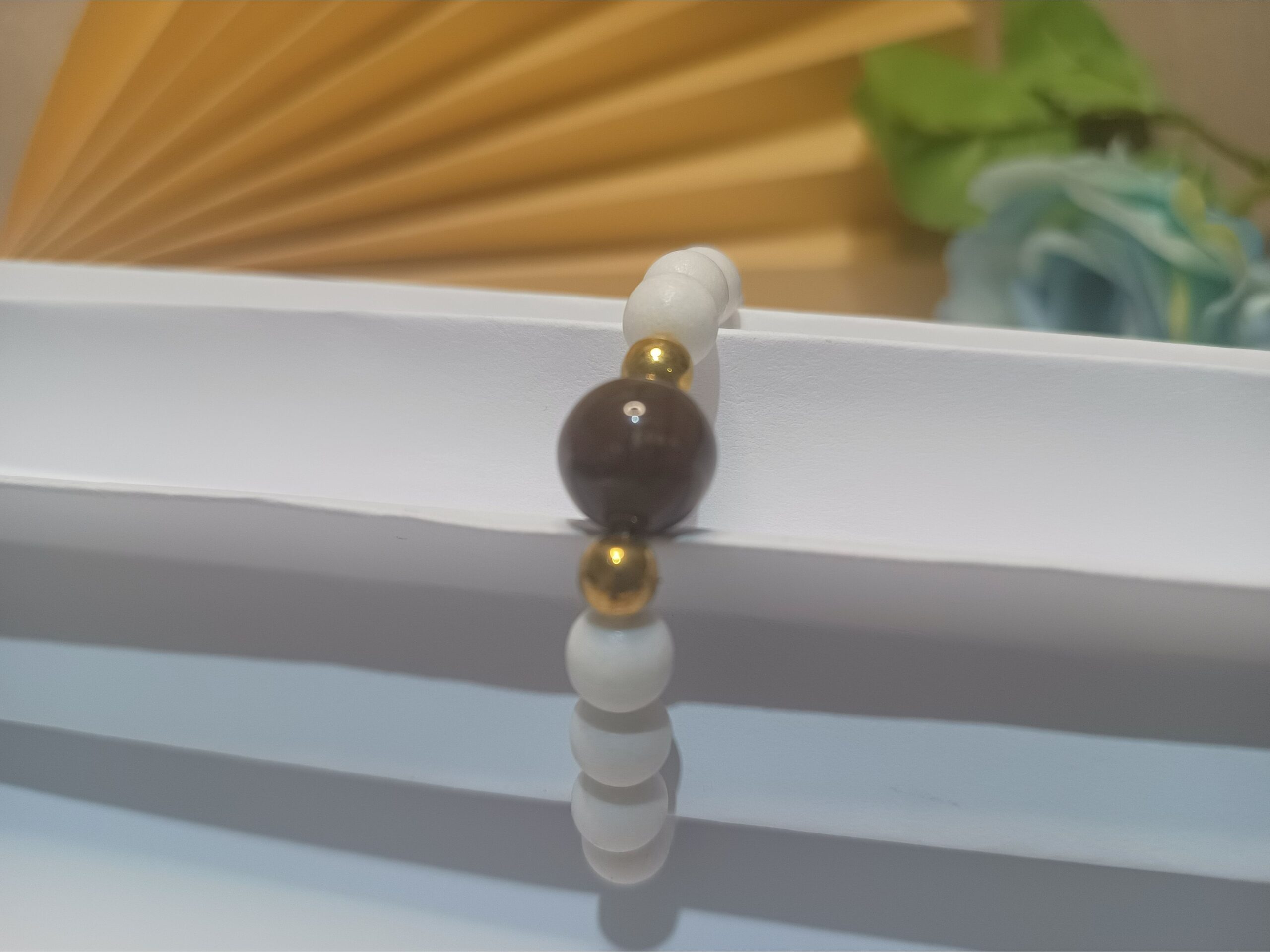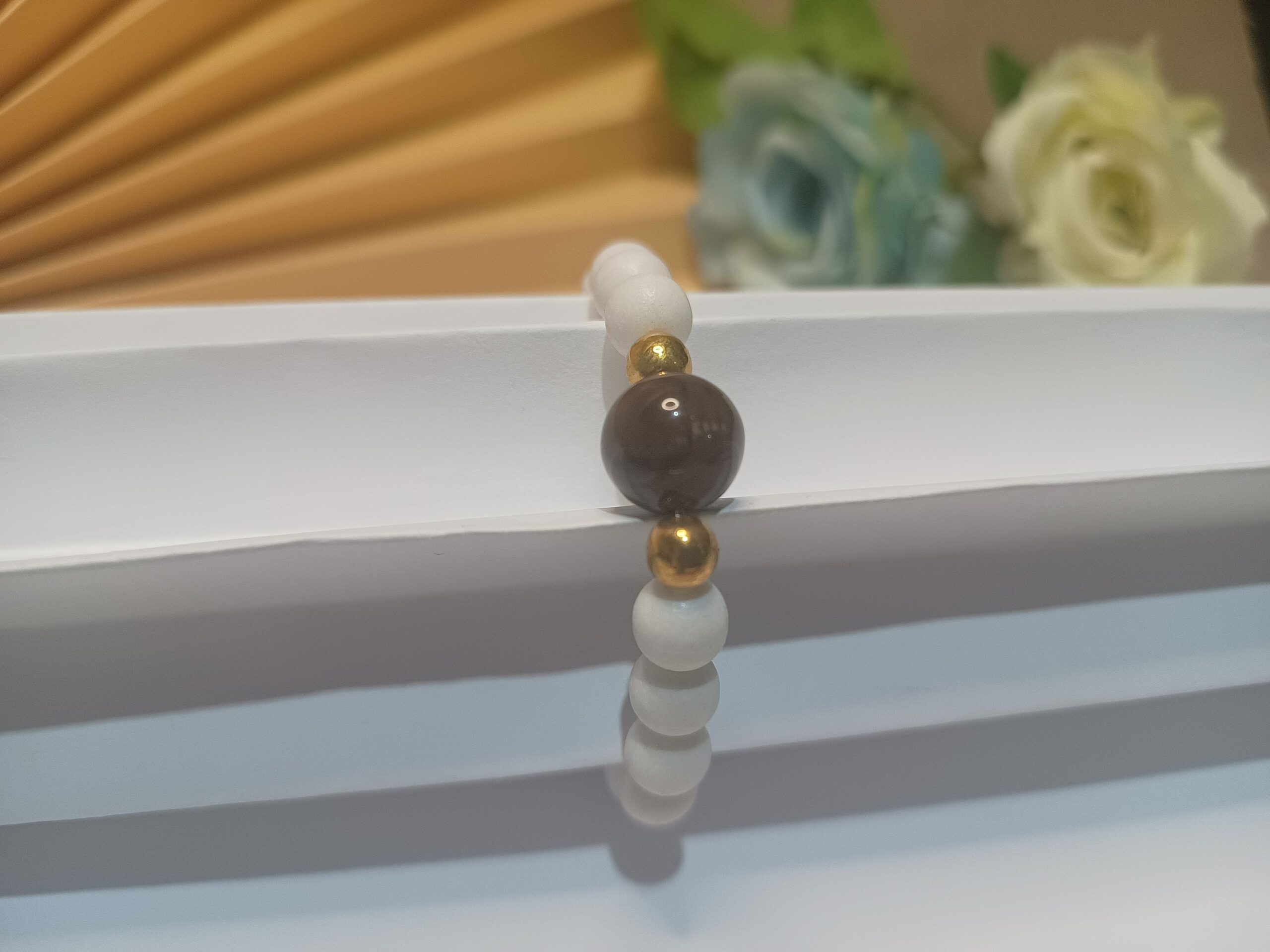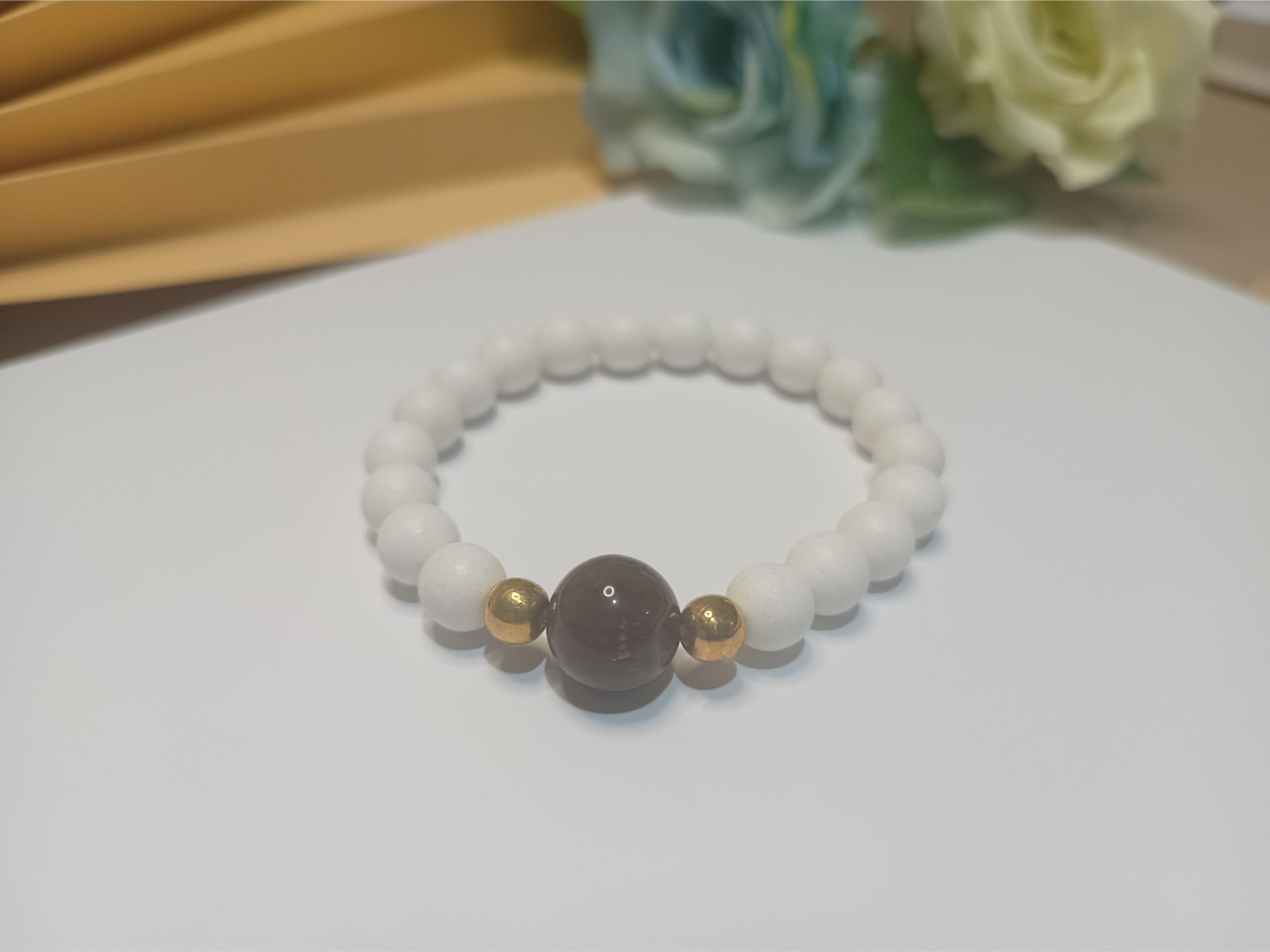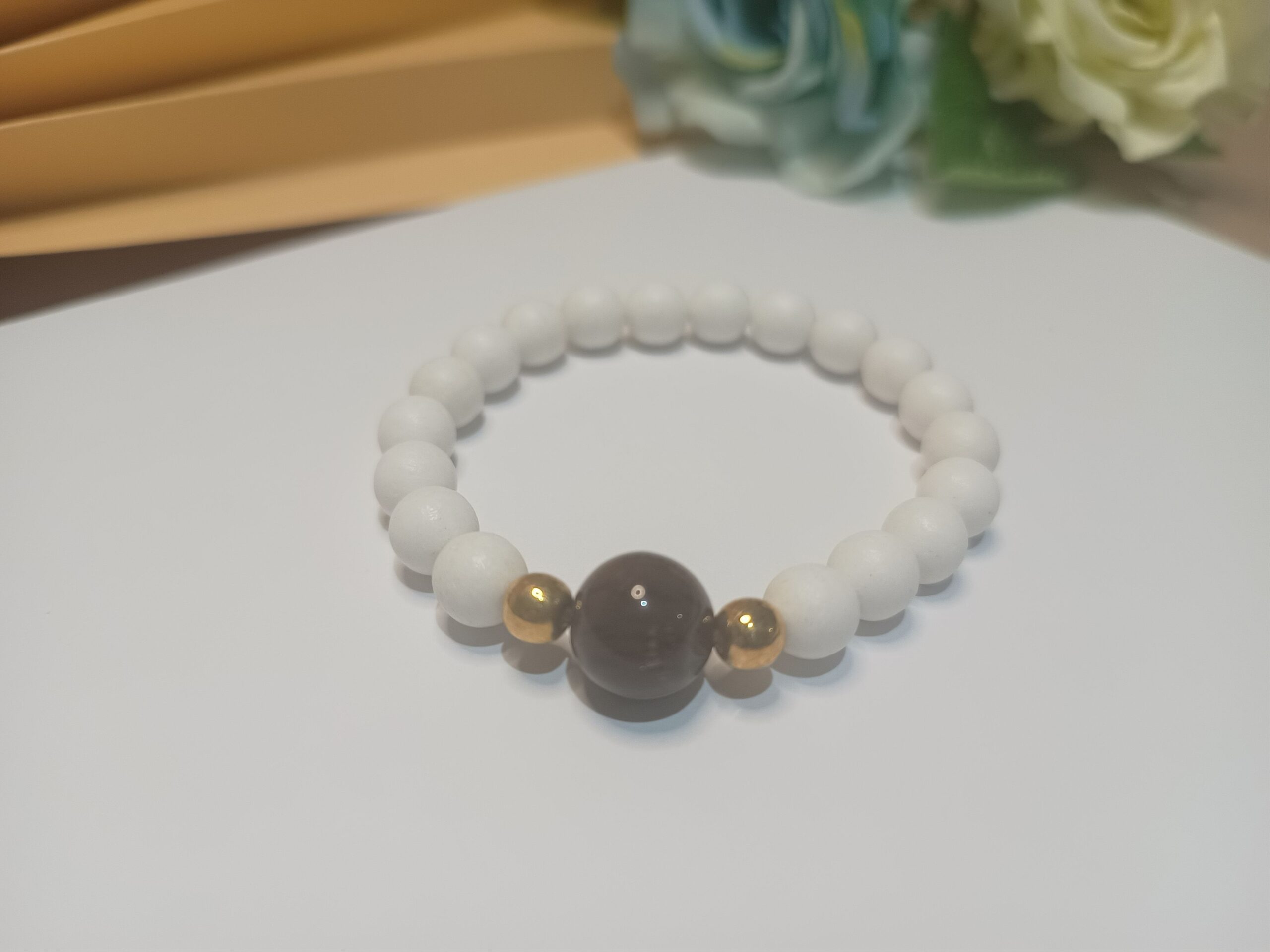 Leve e cheia de estilo! Essa pulseira de silicone com contas branco fosco e a esfera central listrada lilás e roxo é o toque de charme que faltava no seu look. Perfeita para usar sozinha ou no seu mix favorito!